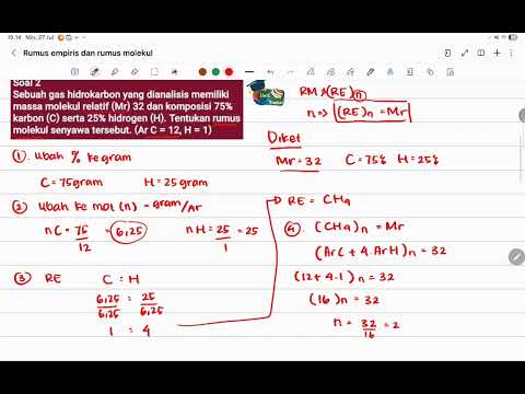 2. Sebuah gas hidrokarbon yang dianalisis memiliki massa molekul relatif (Mr) 32 dan komposisi 75% karbon (C) serta 25% hidrogen (H). Tentukan rumus molekul senyawa tersebut. (Ar C = 12, H = 1)