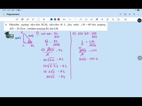 Diketahui segitiga siku-siku KLM, siku-siku di L, jika sudut ∠M = 60° dan panjang KM = 20√6 cm, tentukan panjang KL dan LM!