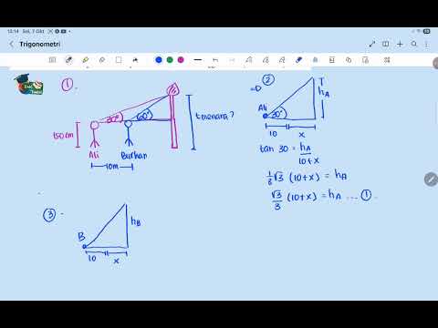 Ali dan Burhan mengamati puncak sebuah menara, Ali mengamati puncak menara dengan sudut elevasi 30° sedangkan di depan Ali berjarak 10 m ada Burhan yang juga sedang mengamati puncak menara dengan sudut elevasi 60°. Jika diasumsikan tinggi Ali dan Burhan diukur dari mata sampai kaki sama, yaitu 150 cm. Tentukan tinggi menara (dalam meter)