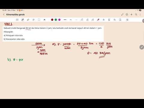 Sebuah mobil bergerak 80 km ke timur dalam 2 jam, lalu berbalik arah ke barat sejauh 40 km dalam 1 jam.